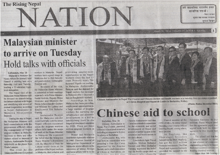這次活動(dòng)在籌備和組織過程中得到了尼泊爾政府、友好組織與尼泊爾人民的大力支持,首先尼泊爾政府和衛(wèi)生部門為活動(dòng)提供了大量的便利條件,尼泊爾的政界也非常支持這次活動(dòng),尼泊爾主要政黨的領(lǐng)袖,與當(dāng)?shù)卣男姓L官都參與了這次活動(dòng),并爭先恐后發(fā)表講話。尼泊爾的主要報(bào)紙也在顯著位置進(jìn)行了大量的報(bào)道。認(rèn)為這是中國人民對尼泊爾的一次重要幫助,希望中國的民間組織以后能更多的到尼泊爾來開展活動(dòng),讓尼泊爾老百姓也能因中國經(jīng)濟(jì)的發(fā)展而得到實(shí)惠。