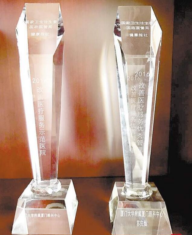 國家衛(wèi)計(jì)委和健康報(bào)頒發(fā)給廈門眼科中心的獎杯。