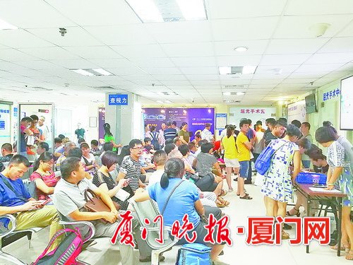 屈光手術中心大廳坐滿了等待手術的患者和家屬