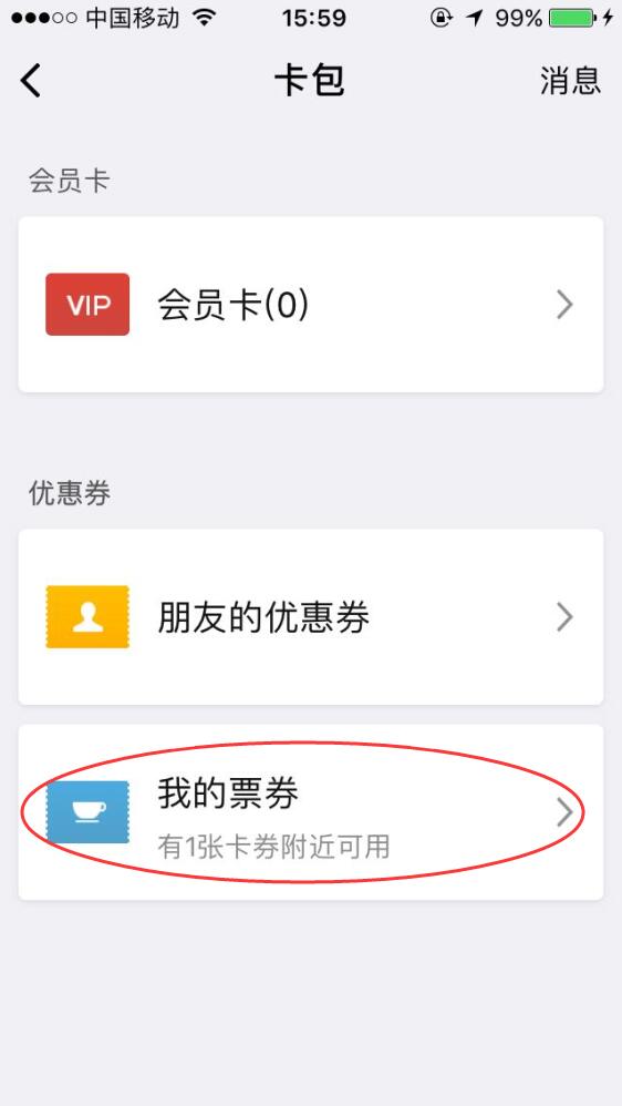 2、點開微信中的我 → 卡包 → 我的票券 → 全飛秒3800元優(yōu)惠券