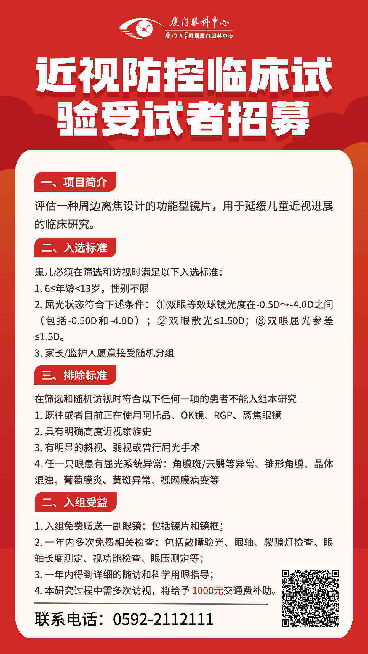 本次研究對受試者的個人信息將嚴(yán)格保密,所獲的所有信息將僅作研究分析之用。如果有可能符合以上條件或想了解更多信息的朋友,可以通過以下方式咨詢:0592-2112111