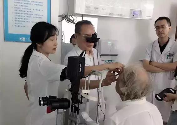 ▲吳國(guó)基院長(zhǎng)為大衛(wèi)進(jìn)行眼部檢查