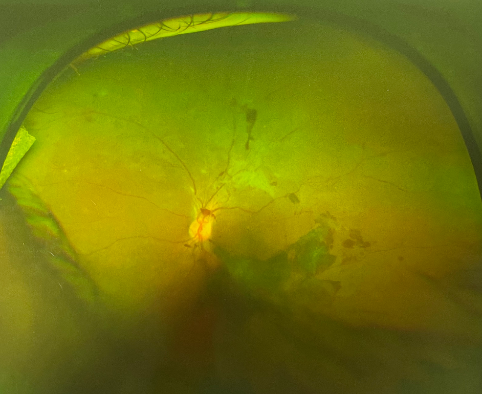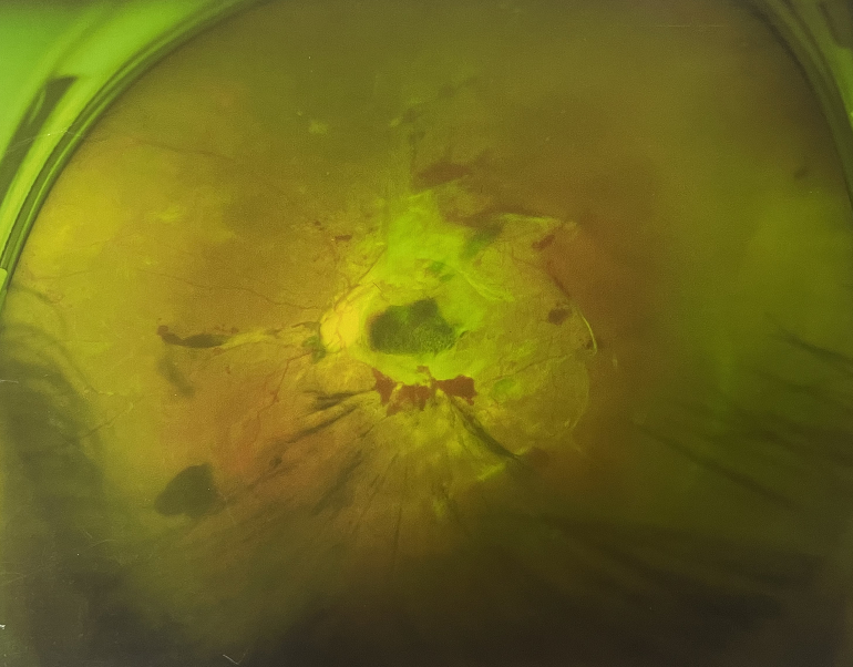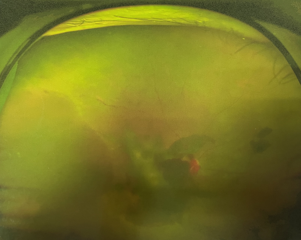 由于王女士的左眼沒(méi)有聽(tīng)從醫(yī)生盡快做手術(shù)的建議,一直耽誤,從4月前的0.4視力逐漸下降到僅剩眼前手動(dòng),導(dǎo)致左眼發(fā)展到糖尿病視網(wǎng)膜病變VI期(屬于6期糖網(wǎng)中的晚期),已經(jīng)產(chǎn)生大量新生血管+纖維增值+廣泛牽拉性視網(wǎng)膜脫離,由于耽誤了病情,且病情發(fā)展異常迅速,導(dǎo)致目前左眼連保住眼球都很困難。