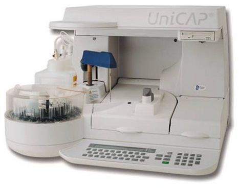 UniCAP是一先進(jìn)的實(shí)驗(yàn)室系統(tǒng),包括體外檢測(cè)試劑和高度自動(dòng)化的儀器。所有的操作步驟:加樣、加試劑及ImmunoCAP、孵育、清洗和計(jì)算,全部自動(dòng)化。而且,嚴(yán)格控制測(cè)試條件,包括內(nèi)部?jī)?chǔ)存的標(biāo)準(zhǔn)曲線(xiàn),確保實(shí)驗(yàn)結(jié)果的真實(shí)可靠。從一簡(jiǎn)單的血樣,UniCAP可快速而準(zhǔn)確地得到檢測(cè)結(jié)果。