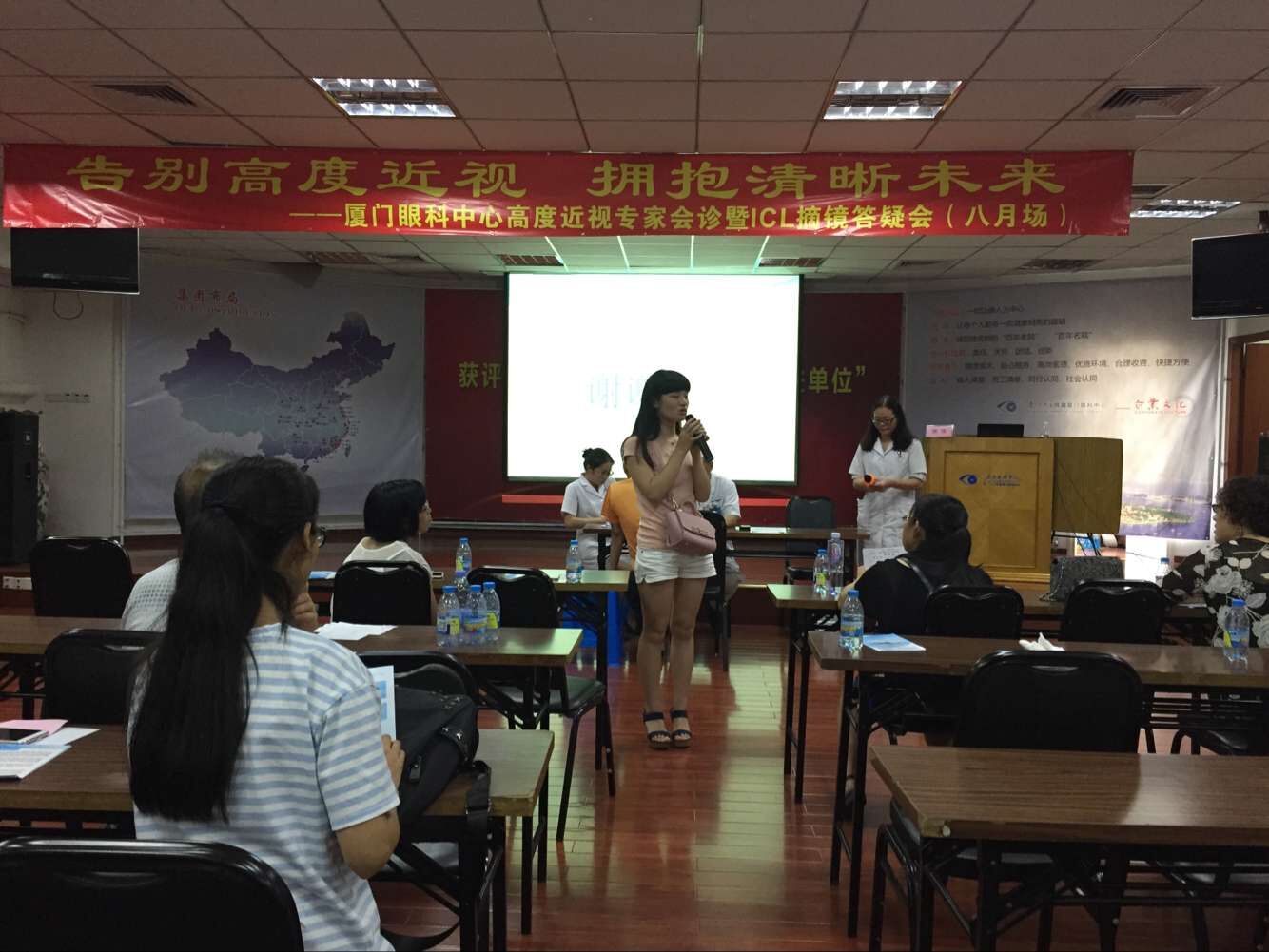 演講結(jié)束后,有兩位做過高度近視ICl晶體植入術(shù)的患者于大家分享經(jīng)驗(yàn)。兩位都是女士,一位做的的T