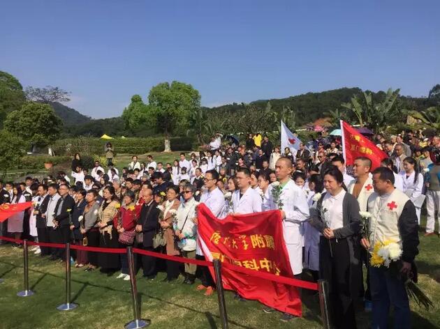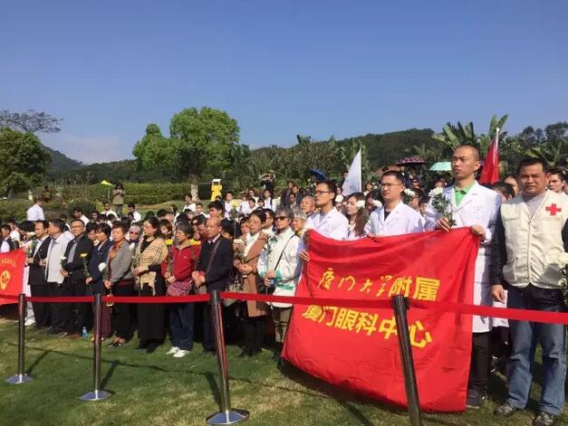 4月1日上午,廈門市紅十字會聯(lián)合廈門大學(xué)附屬廈門眼科中心在海滄文圃山陵園組織的2017年廈門市遺體與器官(組織)捐獻者緬懷紀(jì)念活動順利舉行。捐獻者家屬、捐獻志愿者代表,廈門市紅十字會黨組書記、常務(wù)副會長蘇蘇,廈門市紅十字會副會長兼秘書長俞娟,廈門市衛(wèi)計委醫(yī)政醫(yī)管處處長陳糧,廈門大學(xué)附屬廈門眼科中心黨委書記陳逸恬,以及廈門海滄文圃山陵園開發(fā)有限公司、廈門大學(xué)醫(yī)學(xué)院、廈門醫(yī)學(xué)院、廈門大學(xué)附屬廈門眼科中心以及各區(qū)紅十字會代表共300余人參加了活動。