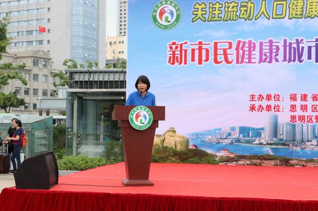 思明區(qū)衛(wèi)生和計劃生育局劉蓓局長宣讀《流動人口健康促進倡議書》