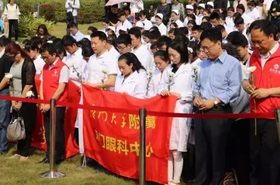 藍(lán)天下,清風(fēng)徐來,菊香陣陣。4月4日上午,在廈門海滄文圃山紀(jì)念園里,廈門市衛(wèi)計(jì)委、民政局、廈門市紅十字會(huì)、廈門眼科中心的工作人員與廈大醫(yī)學(xué)院、廈門醫(yī)學(xué)院的學(xué)生,以及捐獻(xiàn)者家屬、捐獻(xiàn)志愿者代表等300余人集體緬懷廈門市遺體、器官、眼角膜捐獻(xiàn)者,感恩他們的無私贈(zèng)予,幫助生者能夠享受生命,擁有光明。