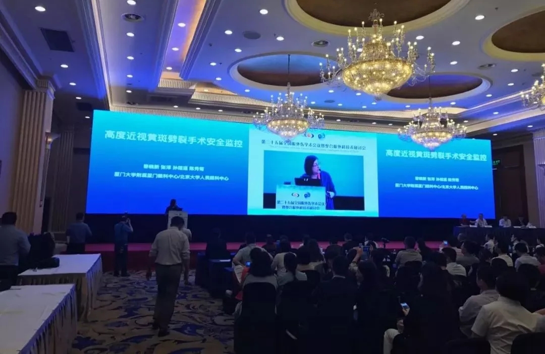 黎曉新院長(zhǎng)受邀作為大會(huì)的VIP專家,在視網(wǎng)膜外科專場(chǎng),進(jìn)行了《高度近視黃斑劈裂手術(shù)安全》的演講,將北京大學(xué)人民醫(yī)院、廈門大學(xué)附屬?gòu)B門眼科中心的患者數(shù)據(jù)進(jìn)行對(duì)比,證實(shí)高度近視黃斑劈裂相關(guān)治療爭(zhēng)論焦點(diǎn)。
