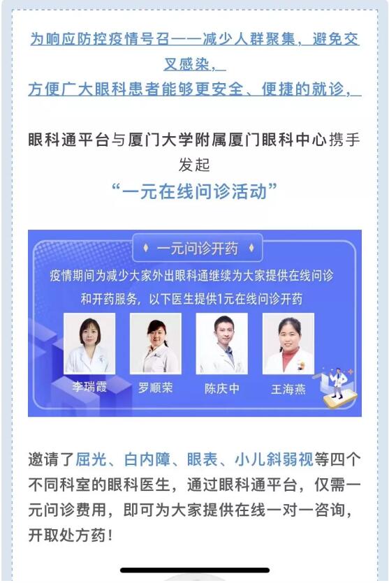 在廈門眼科中心斜視與小兒眼科??圃\室,潘美華教授:“這個(gè)疫情期的寒假,孩子們只能宅在家里,一定要注意孩子眼部衛(wèi)生與健康。要注意觀察孩子是否出現(xiàn)頻繁眨眼、揉眼睛、眼紅、眼痛、畏光流淚等異常情況,不要亂用眼藥水,應(yīng)及時(shí)網(wǎng)上求醫(yī)詢?cè)\,必要時(shí)預(yù)約醫(yī)生來(lái)院就診。”作為廈門眼科中心第1黨支部書記,潘美華教授始終在一線詮釋一名支部書記的責(zé)任與擔(dān)當(dāng)。