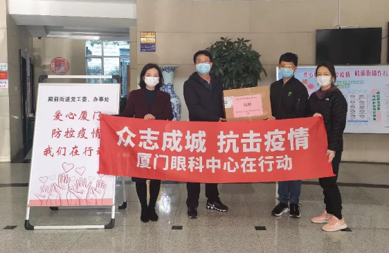 只見(jiàn),數(shù)位志愿者將一箱箱護(hù)目鏡送到街道代表手中,一旁的紅色橫幅寫(xiě)著“眾志成城,抗擊疫情,廈門(mén)眼科中心在行動(dòng)”的醒目大字。連日來(lái),這樣的愛(ài)心場(chǎng)景出現(xiàn)在廈門(mén)各街道,這是來(lái)自廈門(mén)大學(xué)附屬?gòu)B門(mén)眼科中心的愛(ài)心捐贈(zèng)。