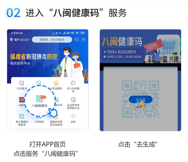登錄閩政通App并完成L4實名認證—進入首頁“八閩健康碼”服務—點擊生成,即可生成個人健康碼。