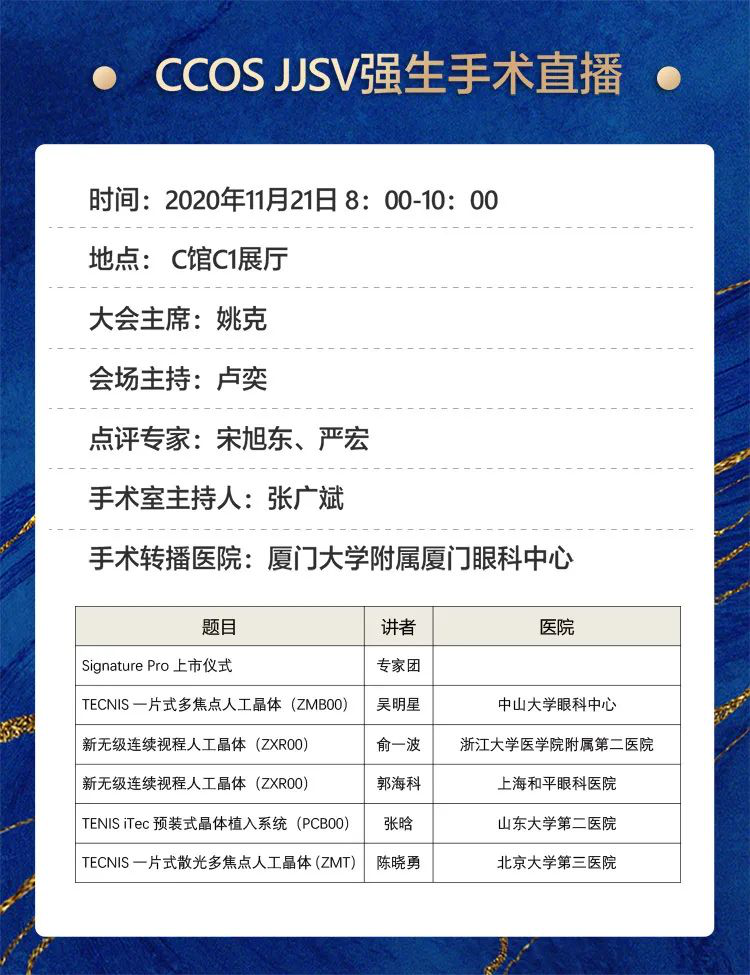 11月21日至22日,在全國(guó)眼科年會(huì)(2020CCOS)期間,4場(chǎng)眼科手術(shù)實(shí)操技術(shù)“云課堂”將精彩上演。面向全國(guó)眼科同道直播的近20臺(tái)手術(shù),將全部在廈門(mén)眼科中心五緣院區(qū)完成。