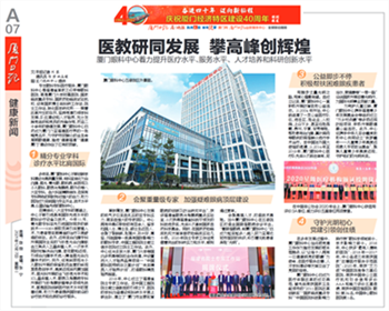 恰逢廈門經(jīng)濟特區(qū)隆重慶祝建設(shè)40周年,乘著改革開放的東風(fēng),廈門眼科中心與特區(qū)同頻共振,著力提升醫(yī)療水平、服務(wù)水平、人才培養(yǎng)及科研創(chuàng)新水平。廈門日報、廈門晚報、海西晨報、海峽導(dǎo)報等媒體進(jìn)行專題報道。