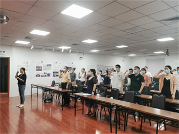 會(huì)議末,廈門眼科中心黨支部書記潘美華院長(zhǎng)帶領(lǐng)全體黨員重溫入黨誓詞。