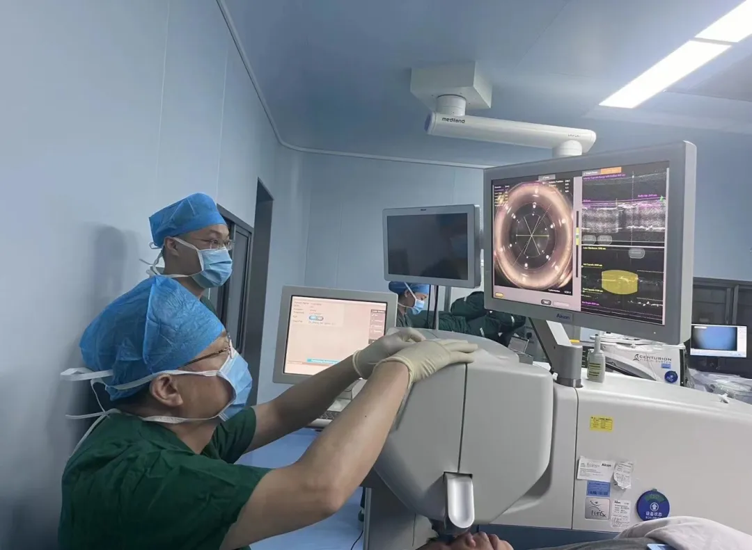 基于李大爺?shù)难劬z查結(jié)果和需求,張廣斌教授為他制定了手術(shù)方案,即飛秒激光輔助白內(nèi)障超聲乳化手術(shù)+老視矯正型三焦點人工晶體。在晶體選擇上,李大爺選擇了醫(yī)院新引進全新Clareon 疏水平臺三焦點老視矯正型人工晶體,并于第二天在張廣斌教授的親自主刀下成功完成手術(shù)。這也是全新Clareon 疏水平臺材料三焦點老視矯正型人工晶體在全國臨床上的首批應用。