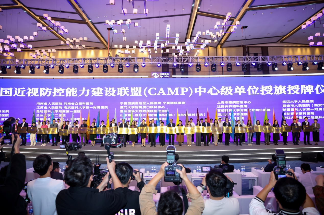 ▲ 中國近視防控能力建設(shè)聯(lián)盟中心級單位授牌授旗儀式