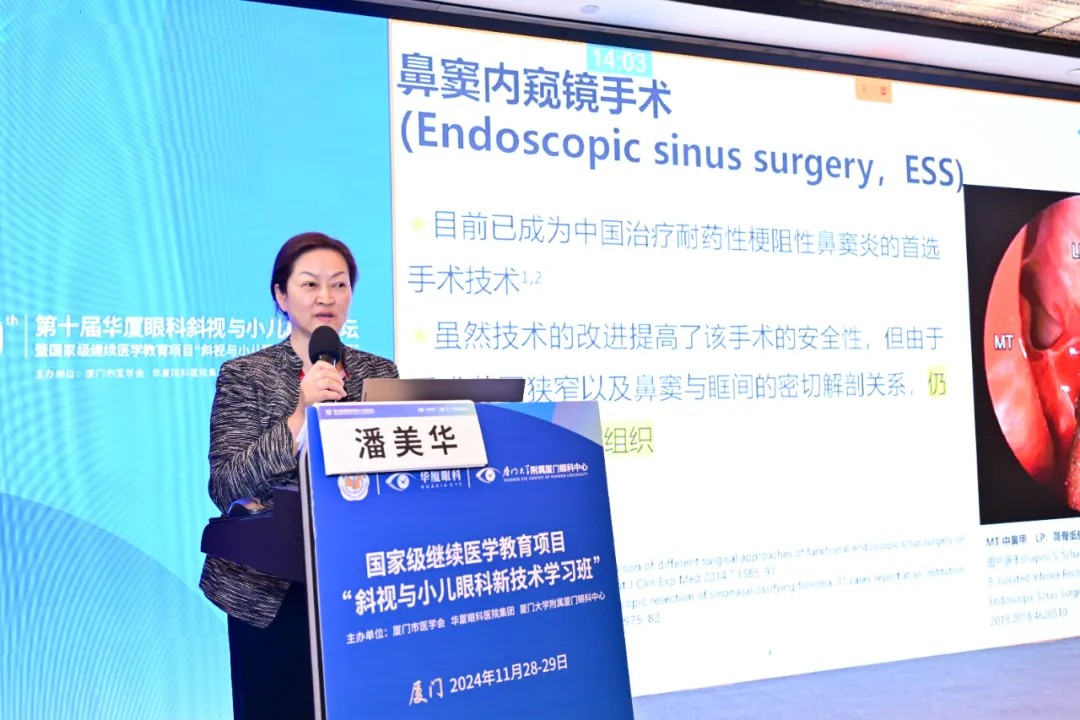 ▲ 潘美華教授分享《從眼科的角度分析與鼻內(nèi)窺鏡手術(shù)相關(guān)的眼外肌損傷》