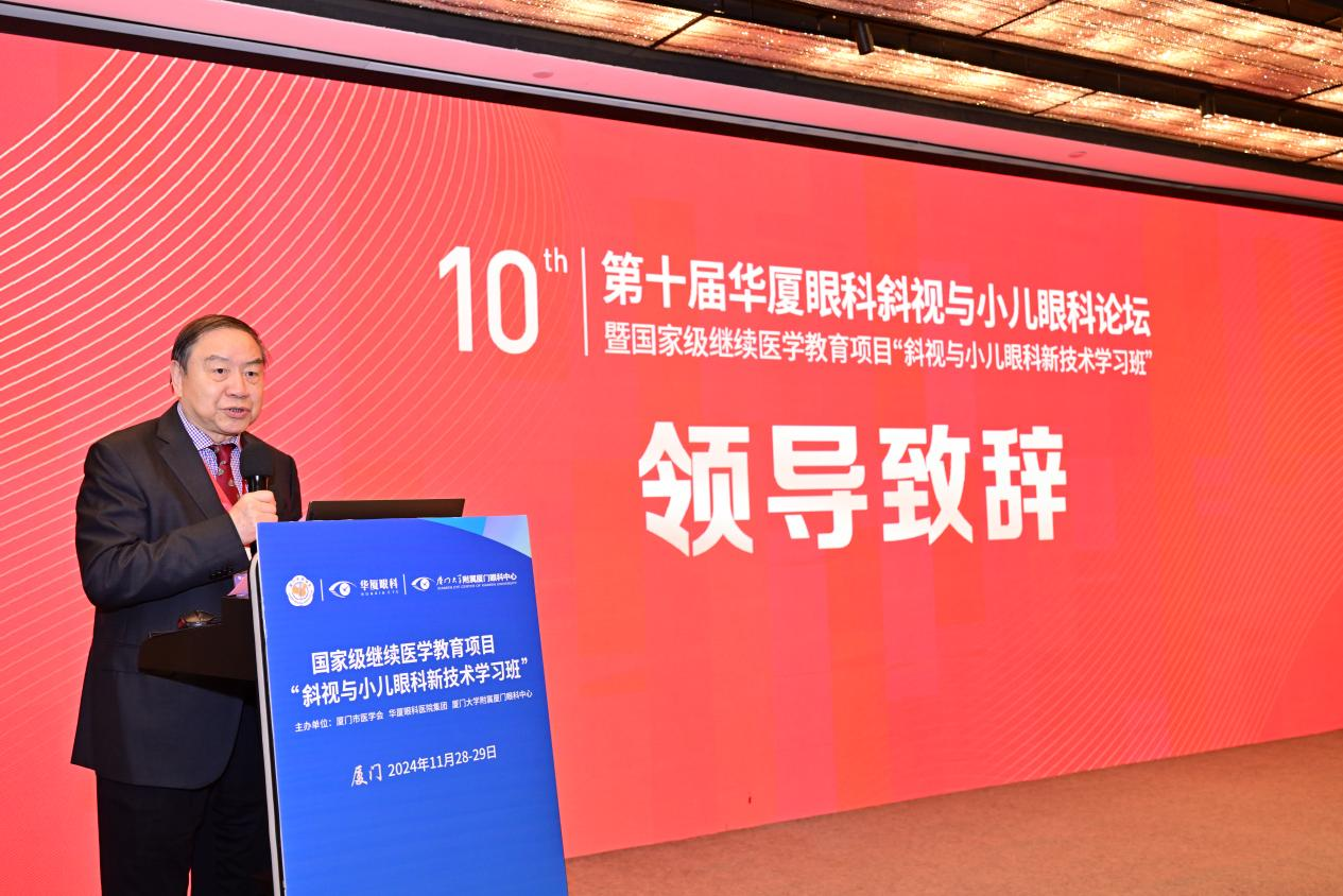 兒童階段是全生命周期眼健康管理的“黃金期”,事關(guān)國家和民族未來。開幕儀式上,國際眼科科學(xué)院院士、華廈眼科醫(yī)院集團專家委員會主席趙堪興教授代表致歡迎辭。趙堪興教授表示,多年來,為更好地推動兒童青少年近視防治工作,守護兒童青少年的眼健康,華廈眼科醫(yī)院集團、廈門眼科中心斜視與小兒眼科始終堅持聚焦近視防控和兒童致盲眼病防治,著力眼科人才培養(yǎng),不斷提升臨床診療水平,全力為兒童青少年眼病防治和眼健康發(fā)育保駕護航。此外,醫(yī)院連續(xù)多年用心舉辦兒童眼病論壇,以內(nèi)涵豐厚的學(xué)術(shù)交流為紐帶,不斷助力推動兒童眼病基礎(chǔ)研究高質(zhì)量發(fā)展,提升基層醫(yī)療機構(gòu)的服務(wù)品質(zhì),推動醫(yī)療服務(wù)同質(zhì)化。