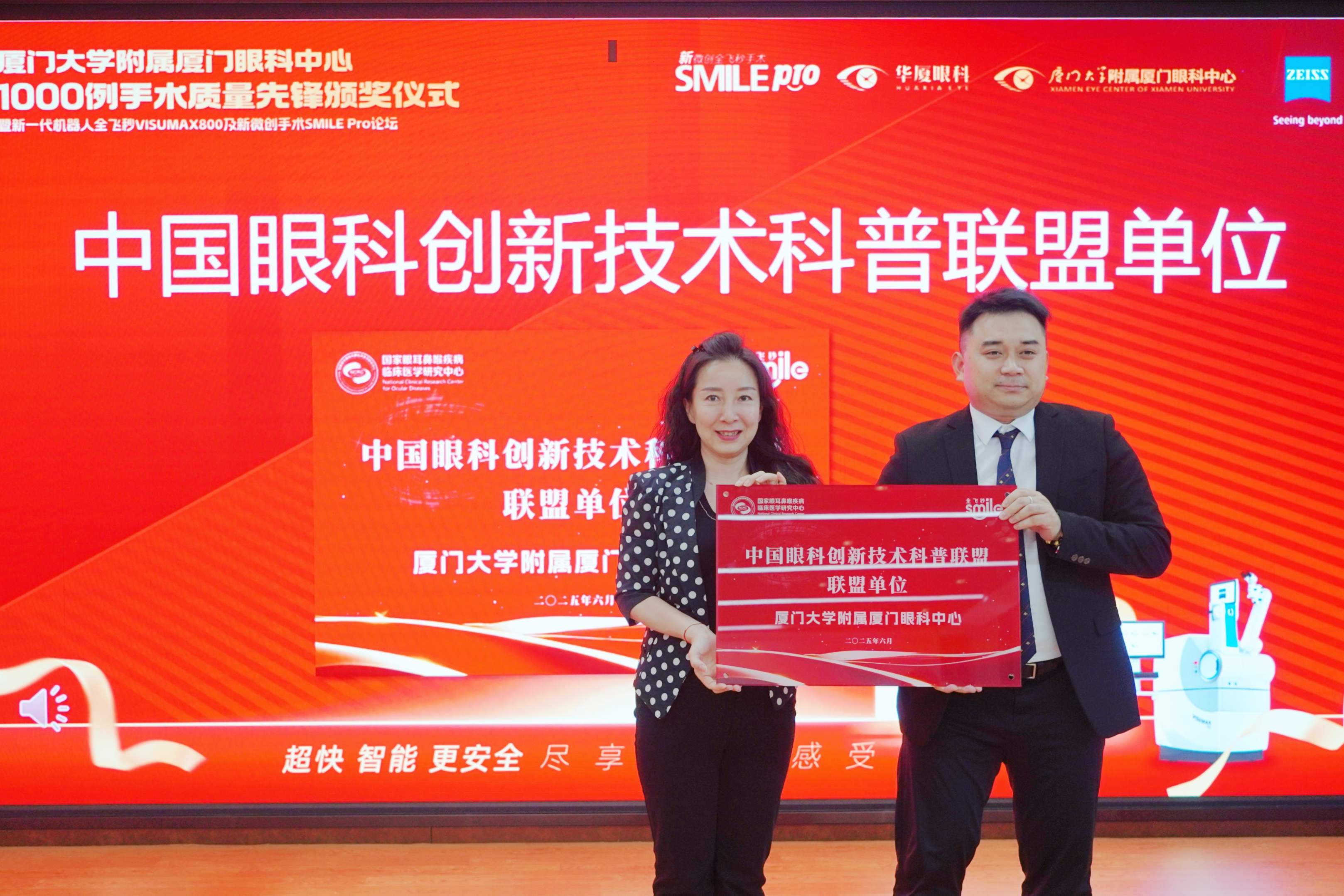 盛夏七月,鷺島生輝。7月4日,作為全國首家全飛秒SMILE pro手術(shù)量突破1000例的醫(yī)院,廈門眼科中心“1000例手術(shù)質(zhì)量先鋒頒獎儀式暨新一代機器人全飛秒VISUMAX800及新微創(chuàng)手術(shù)SMILE Pro論壇”在五緣院區(qū)成功舉辦。本次盛會不僅是廈門眼科中心屈光手術(shù)發(fā)展史上的重要里程碑,更是眼科醫(yī)療邁向智能化、精準化、微創(chuàng)化新紀元的強有力見證。